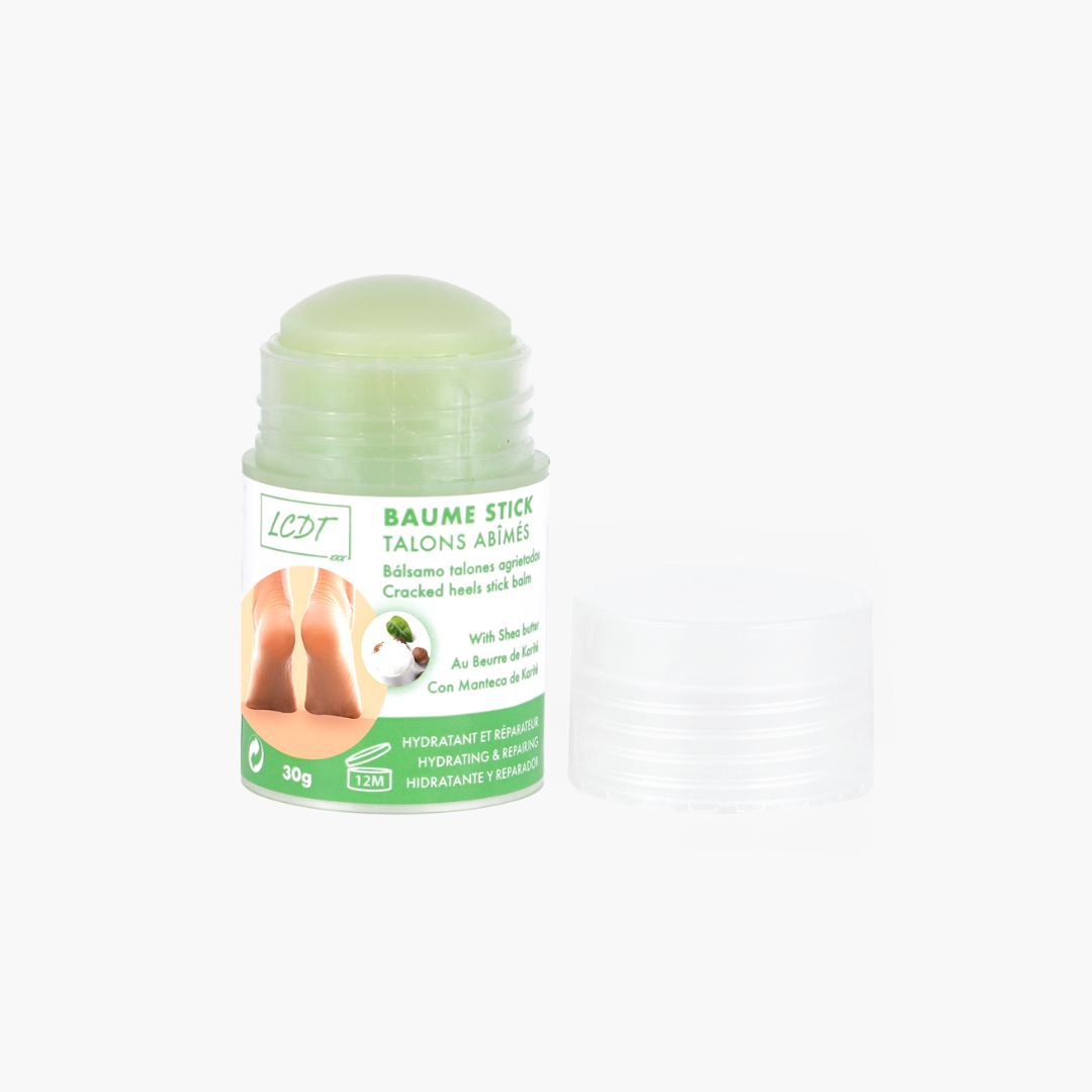 Le Stick pour Talons Abîmés LCDT répare, assouplit et protège les zones sèches et rugueuses. Sa texture fondante forme une barrière invisible qui préserve l’hydratation tout en évitant les frottements. Enrichi en beurre de karité, il nourrit intensément et redonne douceur et confort à tes pieds 👣✨